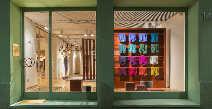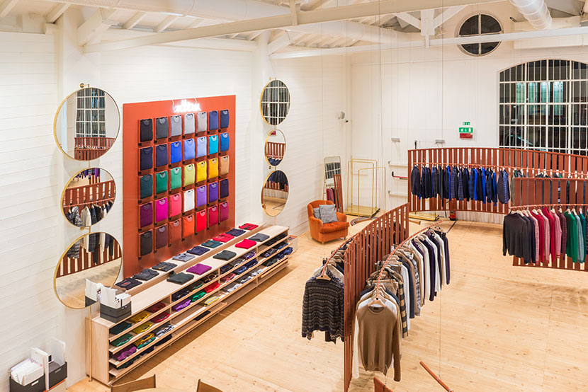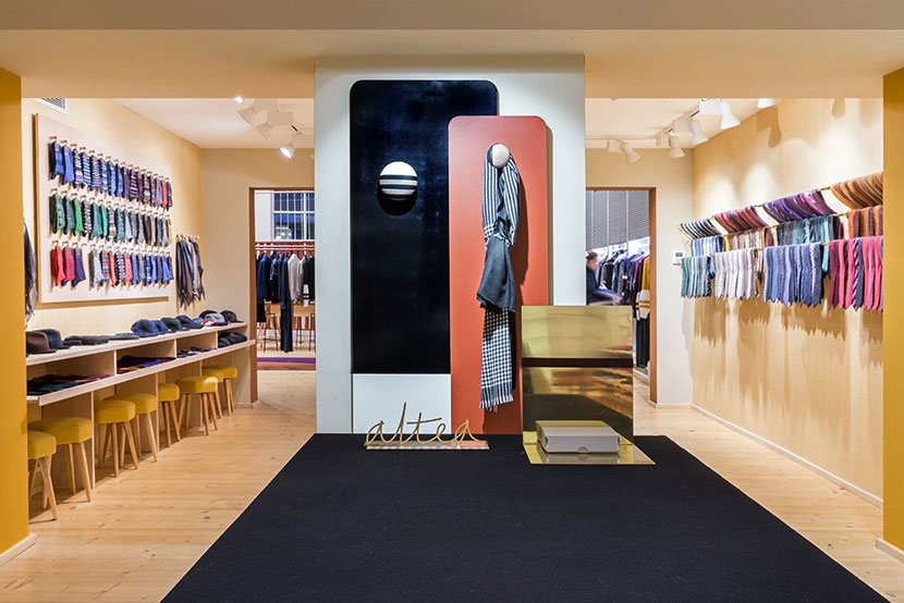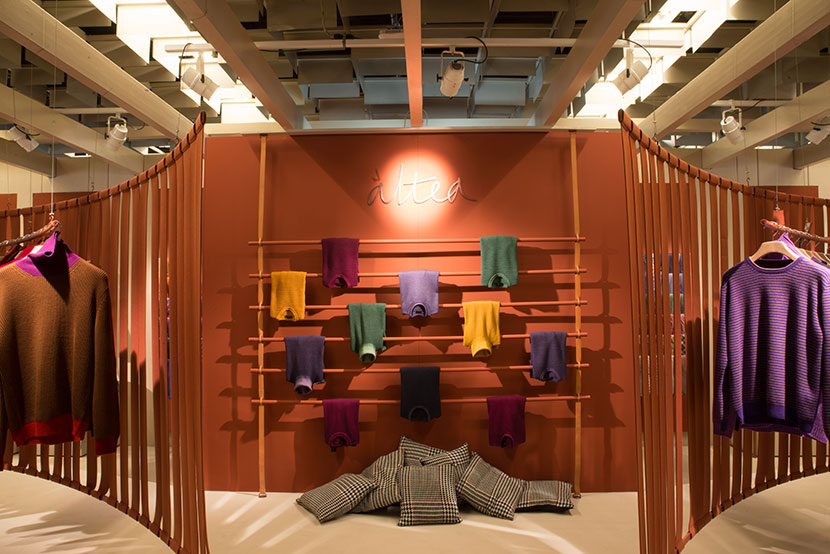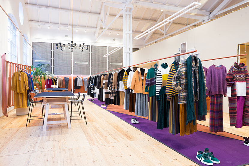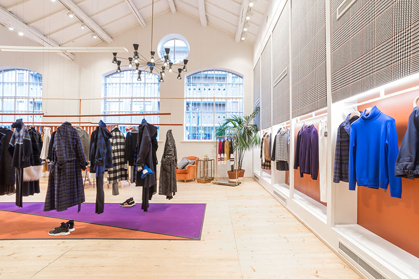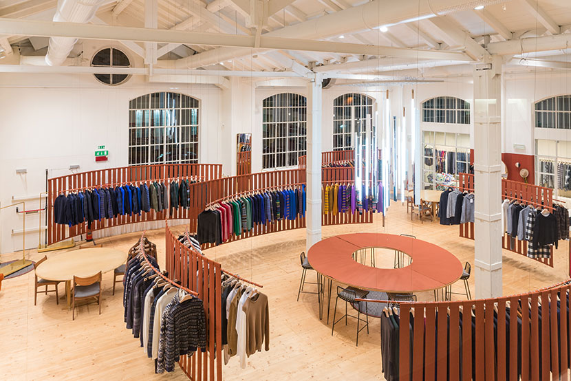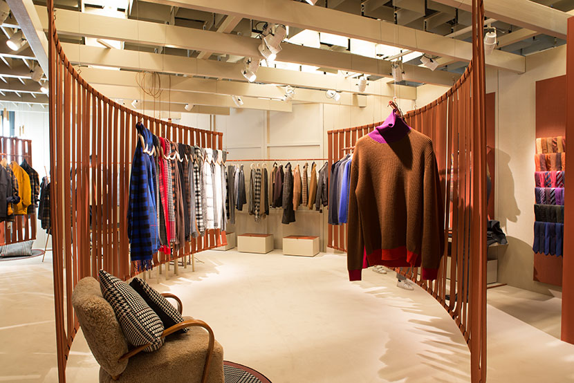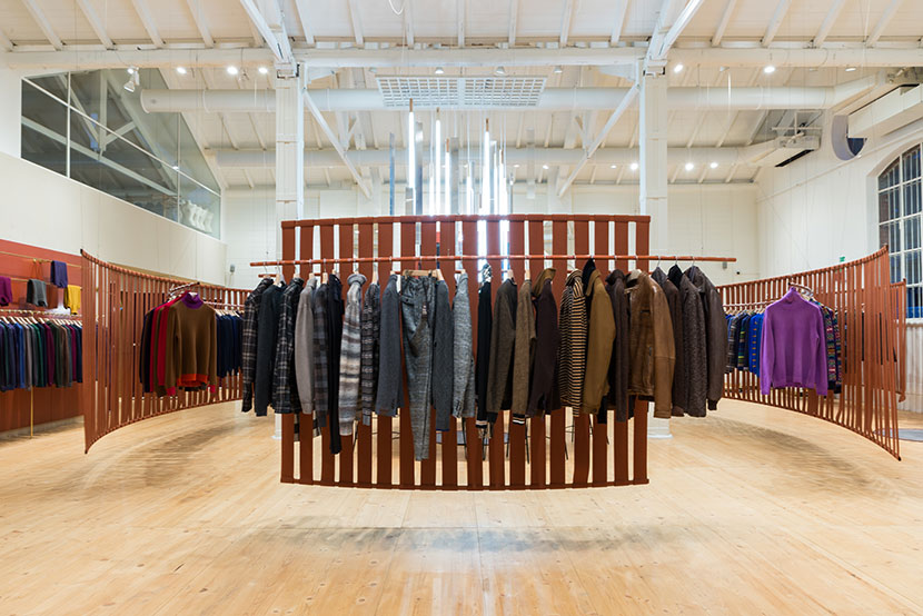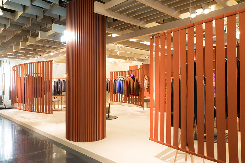 Curved and suspended walls host the new collection.