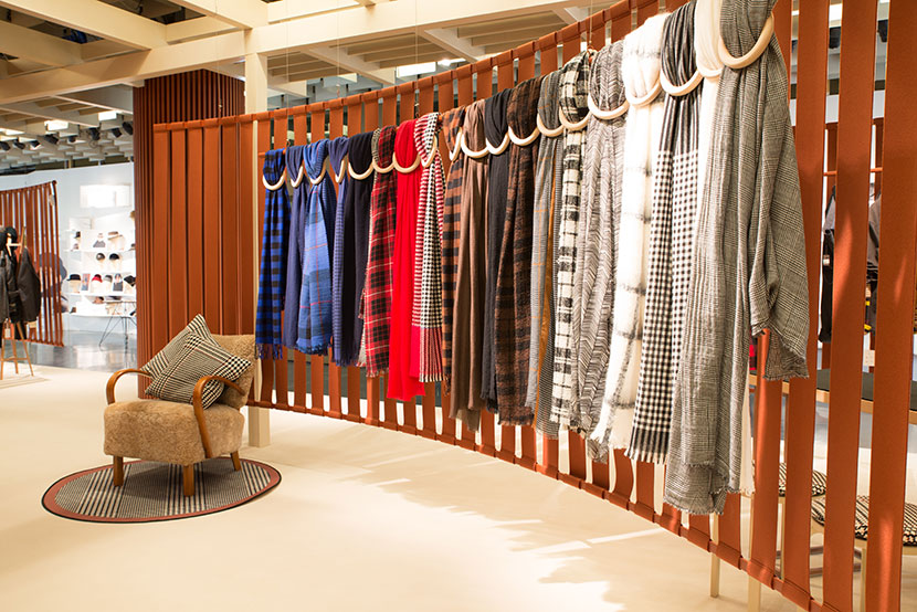 The space is defined by the regular succession of the bands of felt which create concave and convex surfaces. The curve - which in the stand at Pitti Uomo