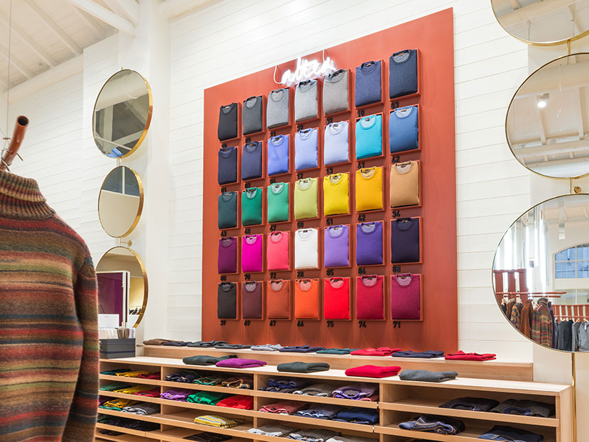 The backdrop of knitwear becomes iconic, organized in a serial fashion and proposing the piece in the colour variants available.