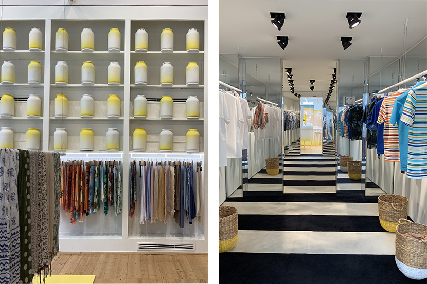 This is the area dedicated to the new streetwear capsule, reached through a curtain of strips of transparent coloured PVC.