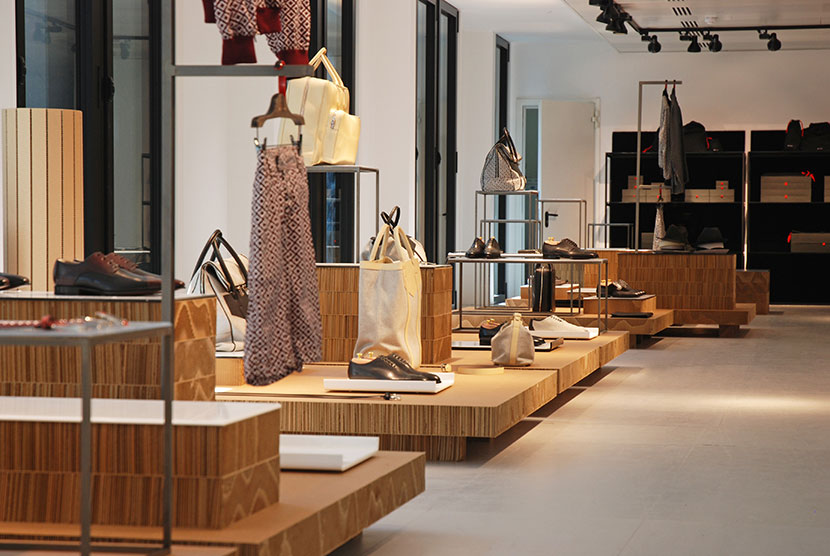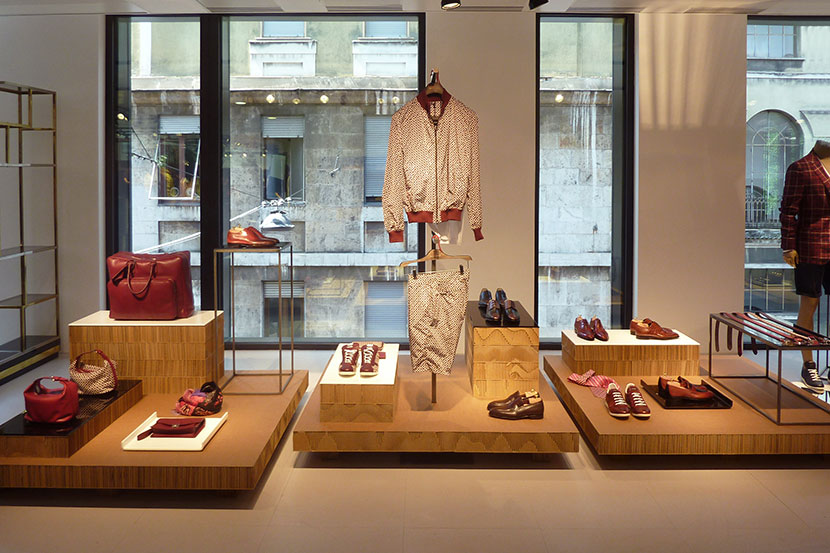 The interior design of the showroom, in an important context of modern Milanese architecture, privileges the view of the adjacent historical buildings, creating a constant overlapping between the interior and the city. Thanks to the materials selected and the flexible solutions used, new and always different configurations are possible.