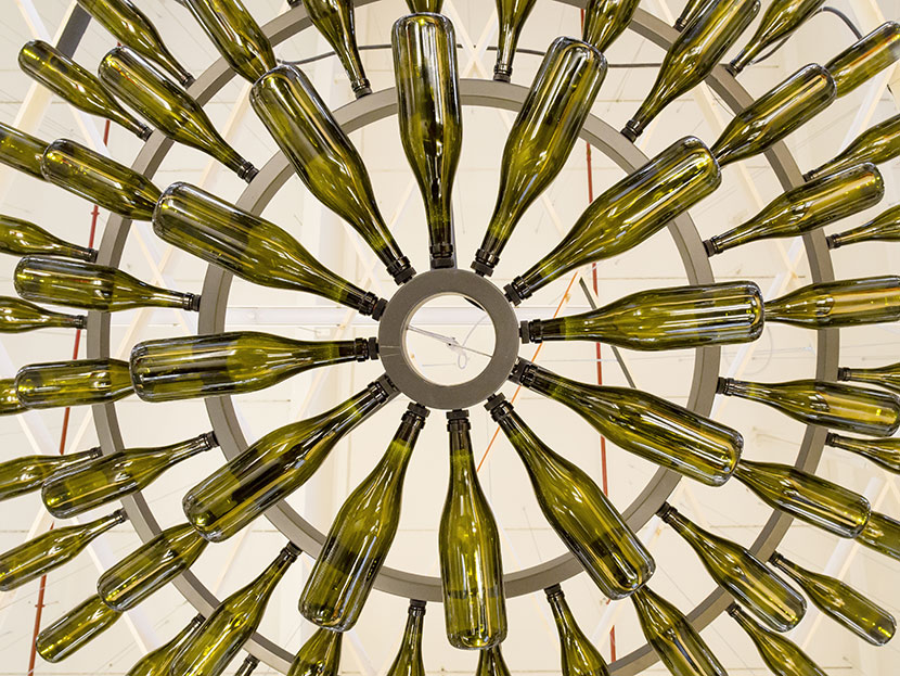 dimension; the chandelier made from bottles hanging over the central counter is spectacular.