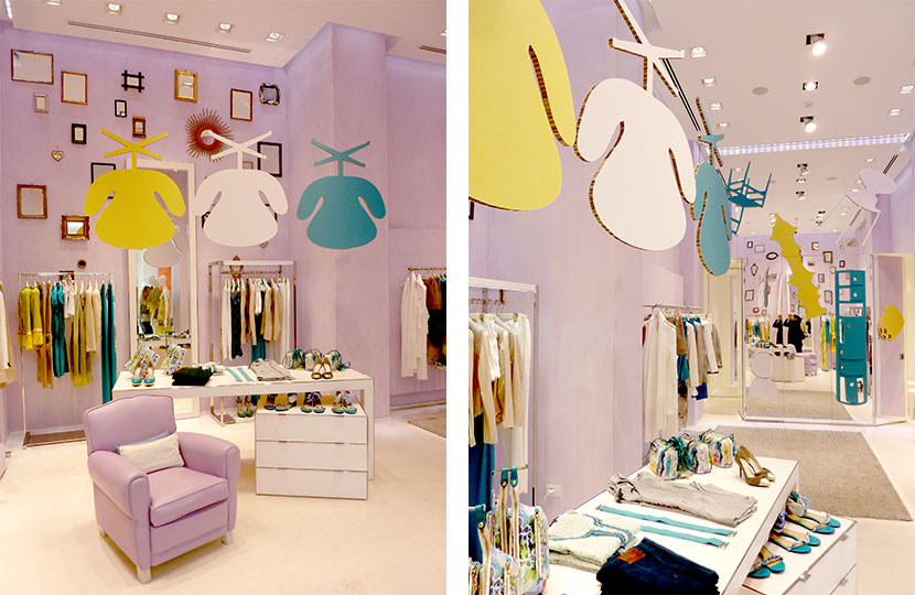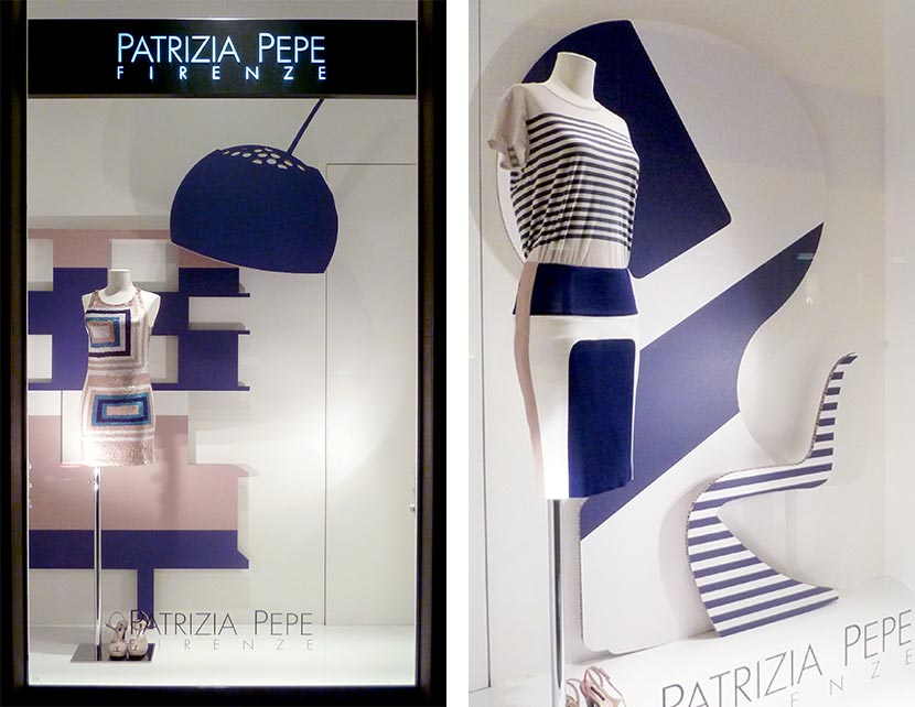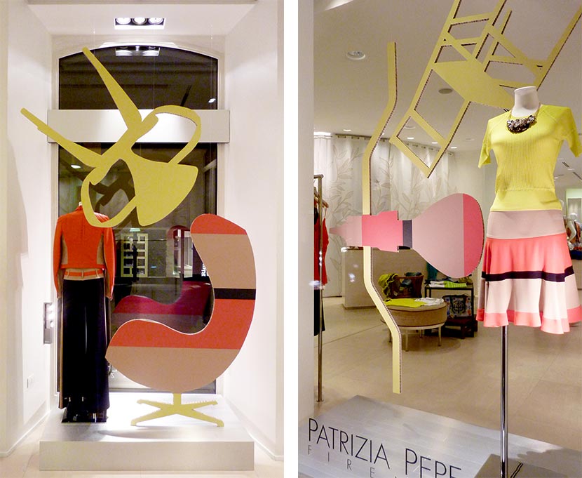 For the interiors and the shop windows of Patrizia Pepe’s Milanese stores, various cult design