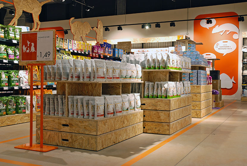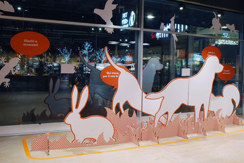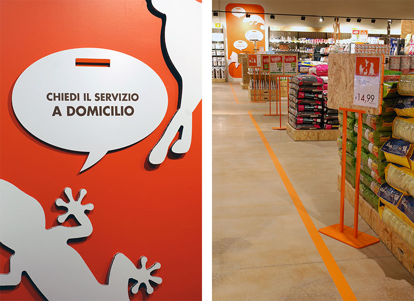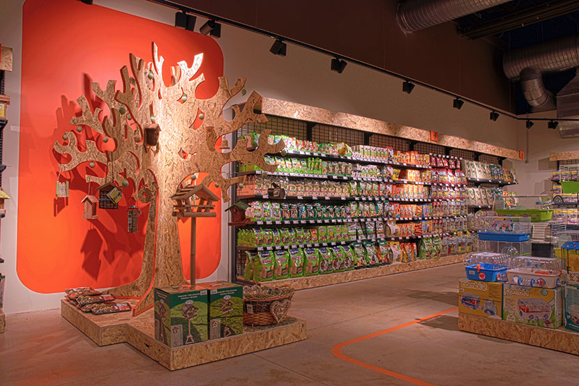 Study of an innovative concept in the language and organization of space for the new 1,050 sq. m. point of sale. Definition of the internal hierarchies on various scales, introduction of flexible elements, permeability of the windows. The visual identity of the POS is reinforced by the posterwalls; the supports for the product and communication are studied in detail and can be repositioned; search for recycled natural materials (wood and cardboard).