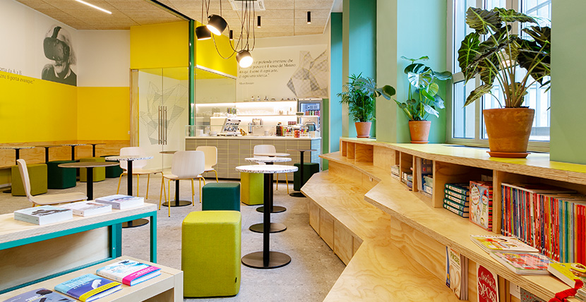 A space designed for multiple purposes: coffee shop, bookshop, location for small events.