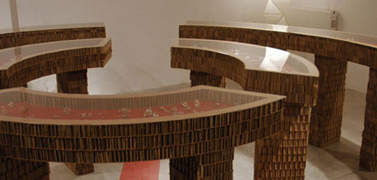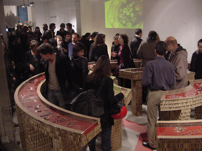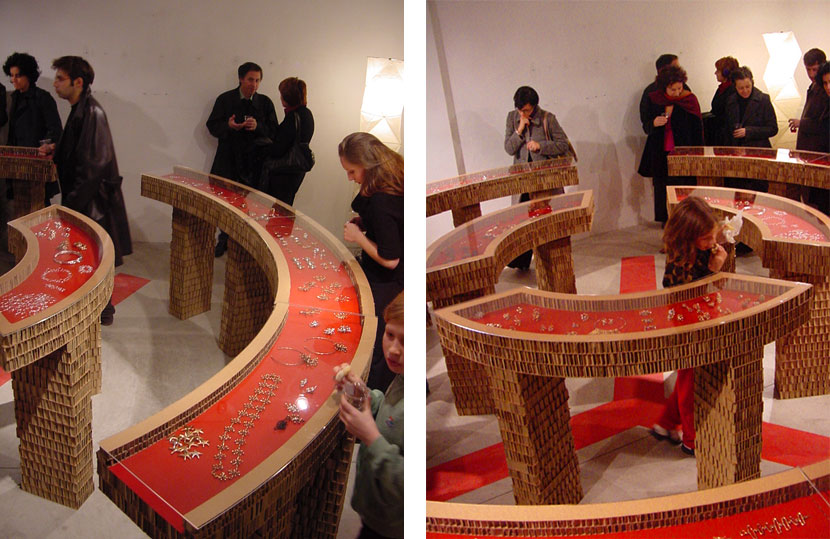 Set design and layout in the Dovetusai space for the 10th anniversary of the Anthias brand of jewellery. Creation of cardboard display cases in the shape of the symbol of peace.