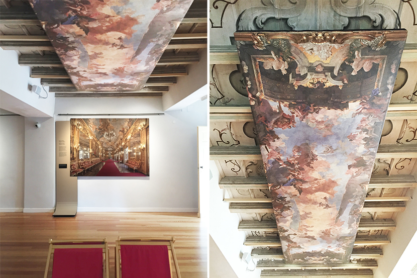 the scale reproduction of the vault ceiling of the Tiepolo Gallery of Palazzo Clerici in Milan.