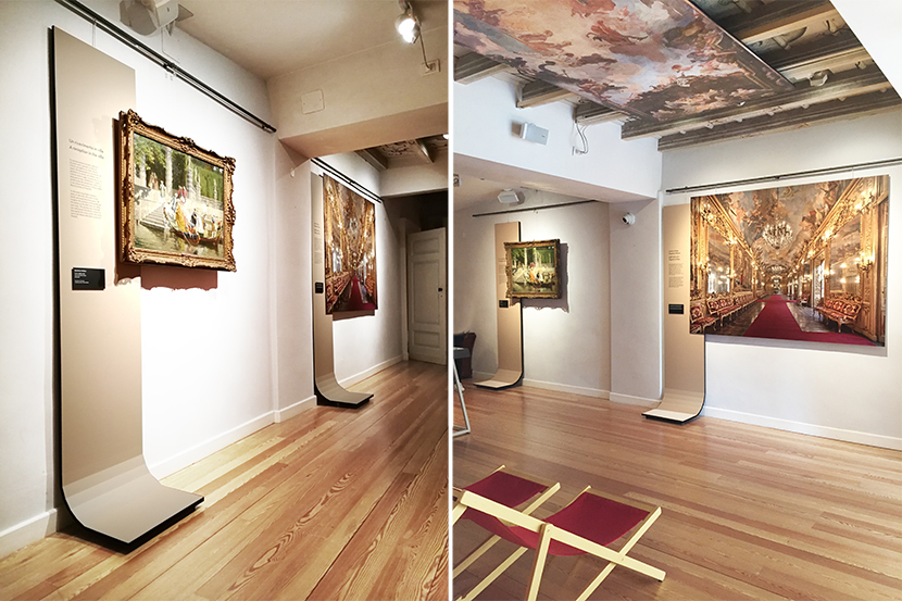 The light set-up of the exhibition tells the story, in a route through five rooms and on curved cardboard panels, the story of the home when it was Villa Clerici, more than three hundred years ago.