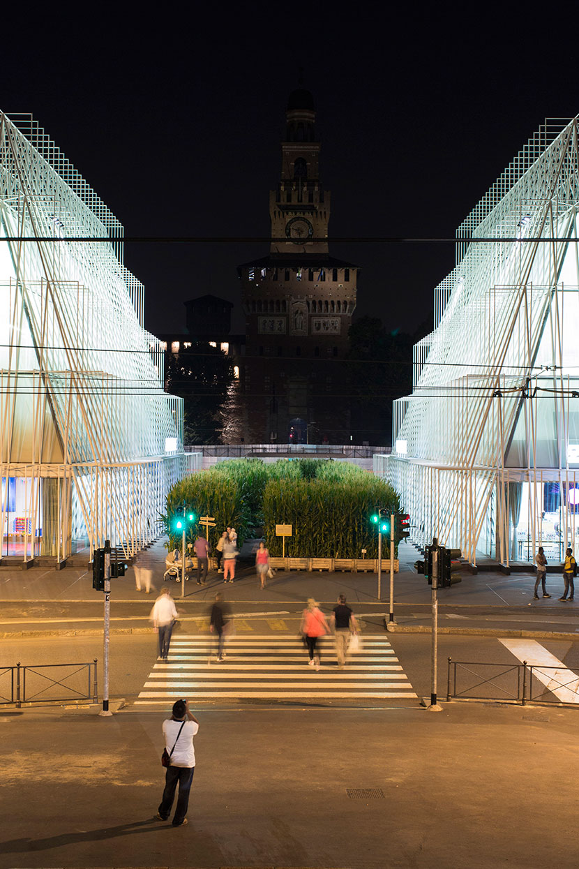 Conception and realization of a project that experiments the ability to modify the urban scene. An unexpected installation designs a new urban geometry in a place that is defined and rooted in the collective imagination. The corn field that suddenly appeared in the heart of Milan is an unusual agricultural passage that changes places and habits. Created as an urban installation, quantomais gradually becomes a collective multi-disciplinary work, a hub of socialization and culture.