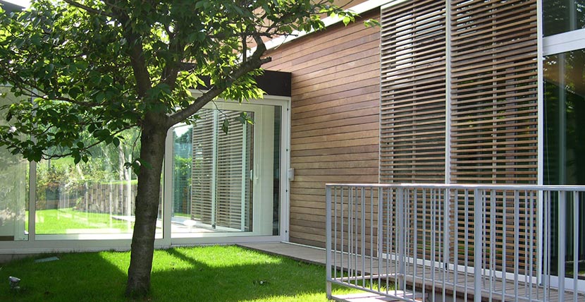 Extension of an independent house consisting of two rooms with bathrooms and a fitness area in the basement which looks on to underground patios. Addition on the south side of a glass façade connected to the house through a transparent connection.