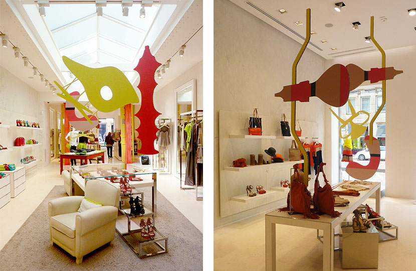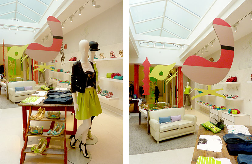 For the interiors and the shop windows of Patrizia Pepe’s Milanese stores, various cult design