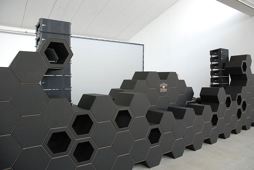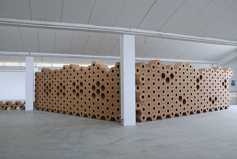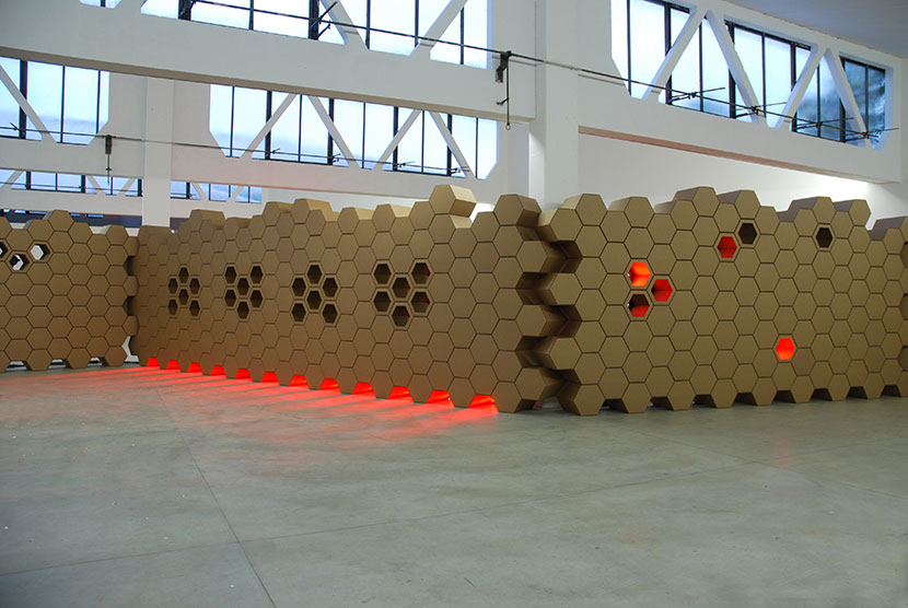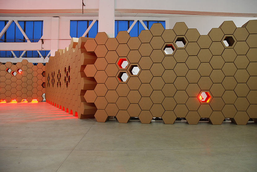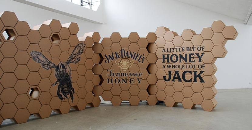 A liqueur with a hint of honey is the inspiration for the setup in which 650 cardboard elements form